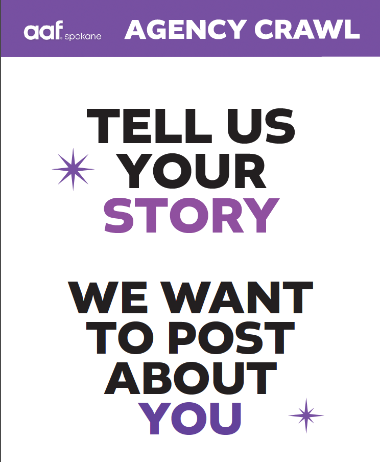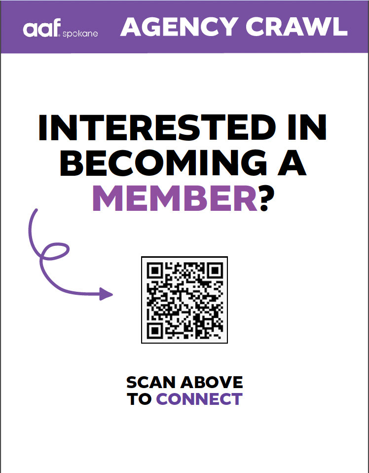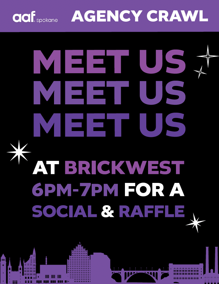 Designed various flyers and signage for AAF Spokane’s annual Agency Crawl, promoting participation and highlighting local creative agencies.