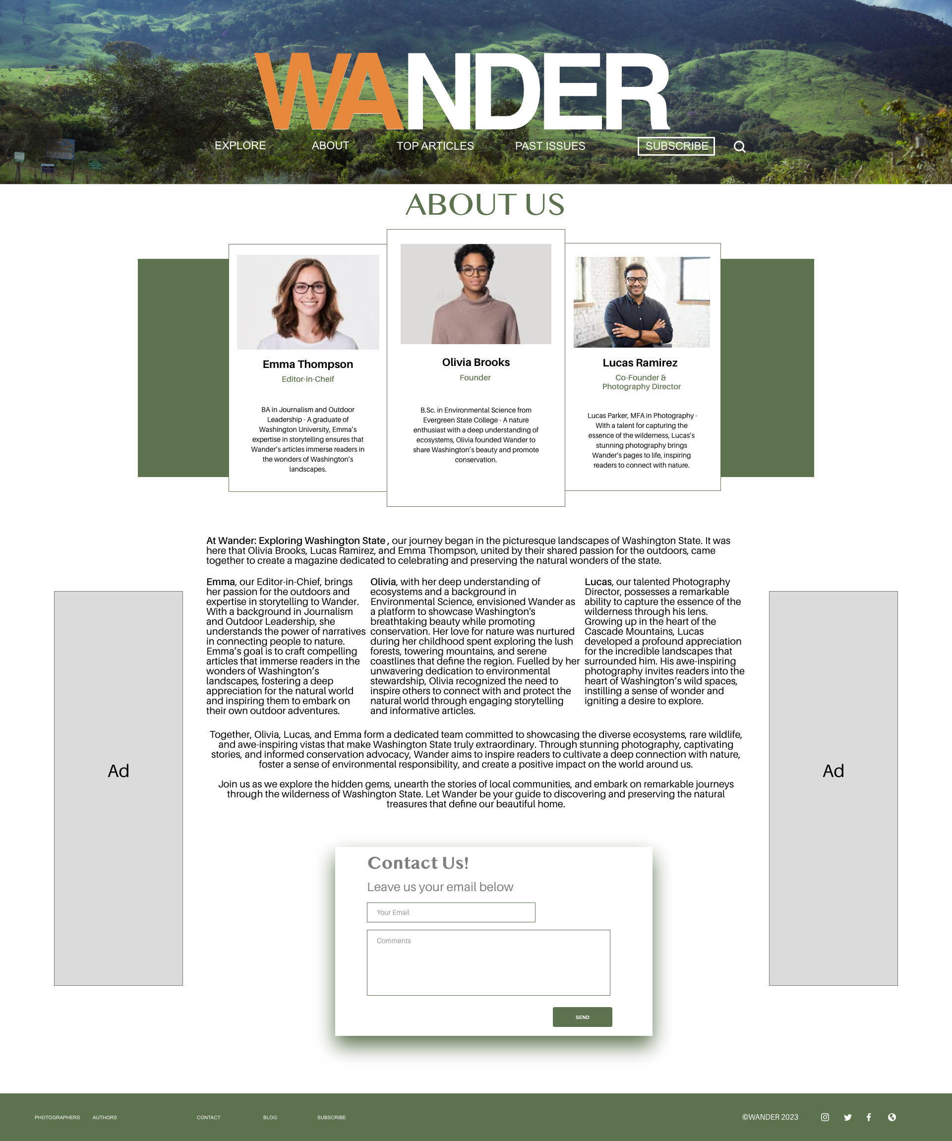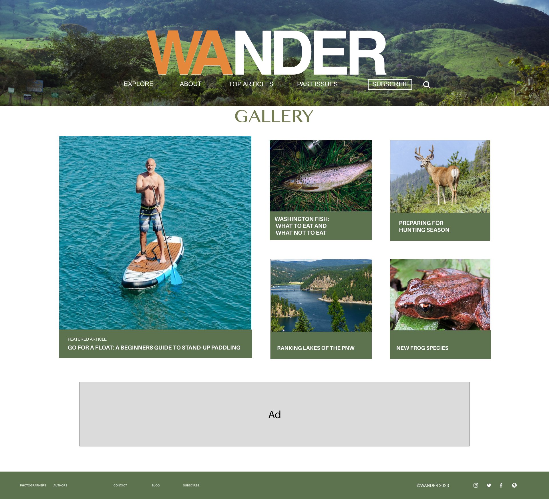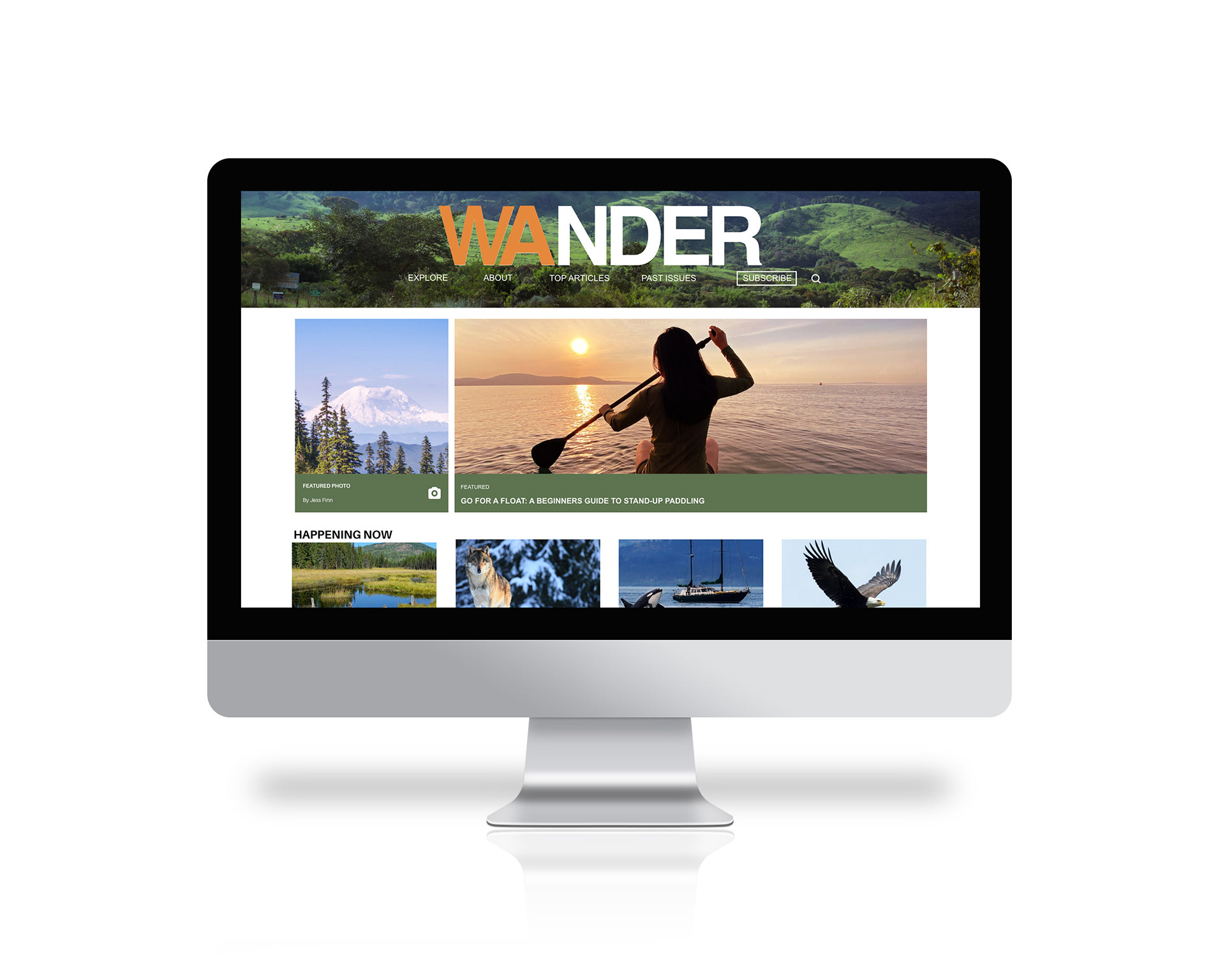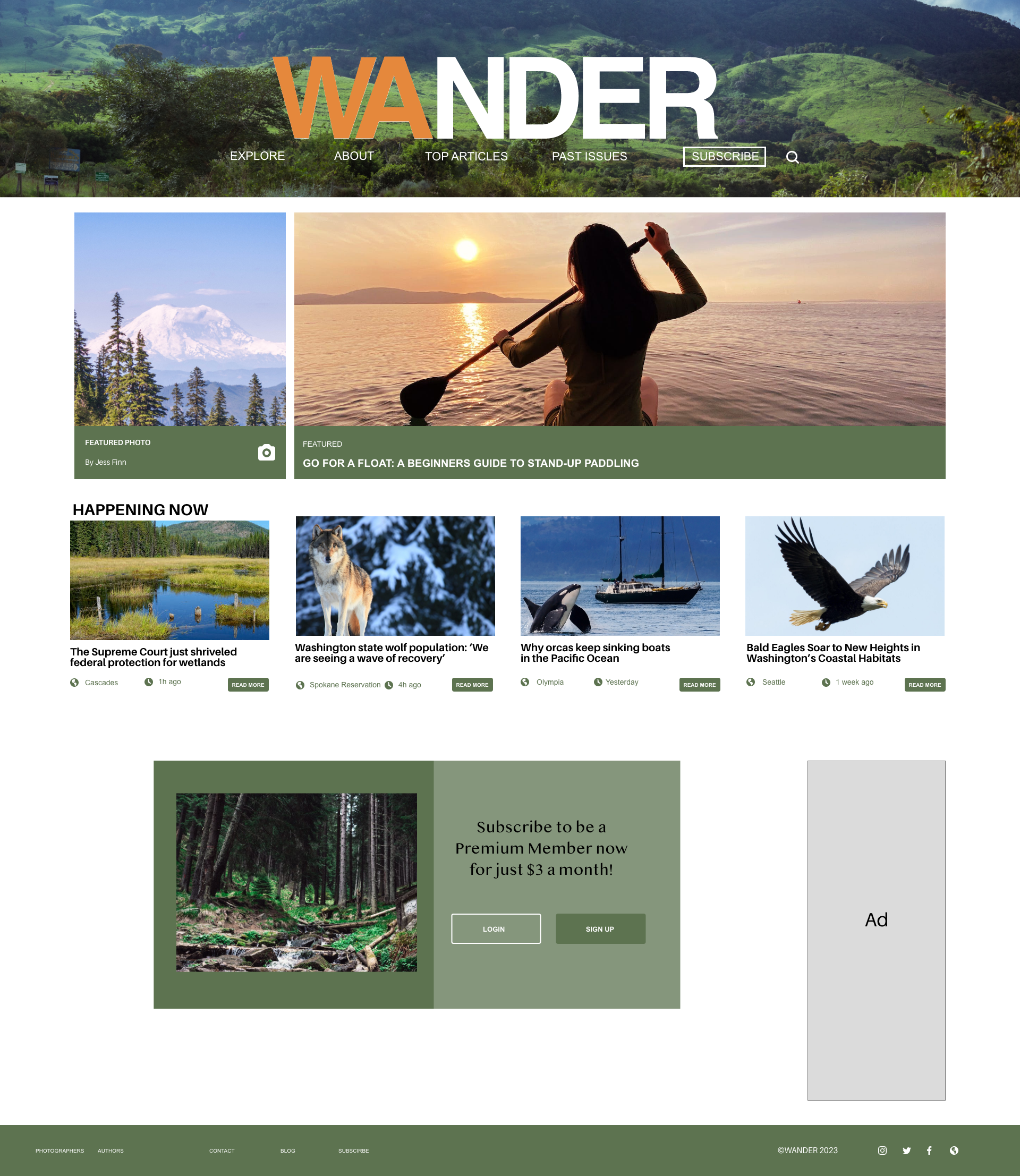 Website design for Wander, a Washington state nature magazine covering everything from mountains to lakes.